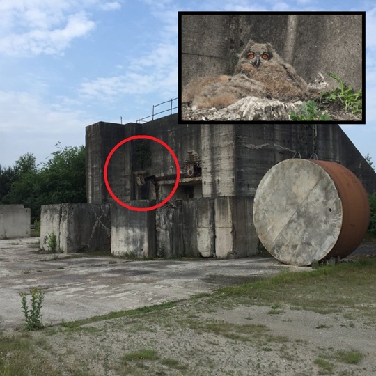 In steden als Nordhorn, Hamburg en Lingen worden broedende oehoes aangetroffen op en in gebouwen, silo’s, bunkers en onder transportbanden.